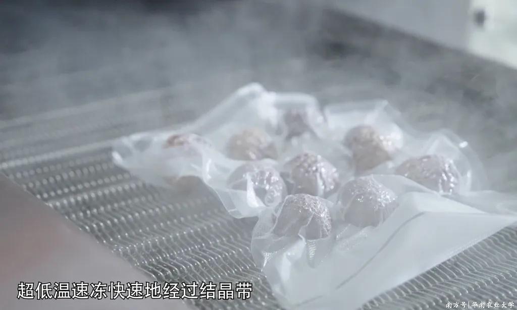 在食品学院的广东省功能食品活性物重点实验室,应用了超低温冻眠锁鲜技术的荔枝,配合真空包装,保鲜期最长可达18个月,解冻后依然能品尝到果实的鲜甜。同时,团队还在荔枝果肉、果皮和果核的活性成分功能研究上取得成效,并新开发一种高效低温萃取技术,副产物高值化利用技术趋于成熟。