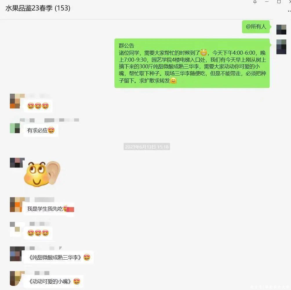 除了课上“水果管饱”,学校也经常会有水果品鉴活动。一些水果研究相关课题组会征集“水果品鉴官”,请大家给出感官方面的品质评价、帮忙取果核等,为选育新品种做准备。其中,荔枝向来是“重头戏”。